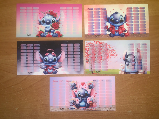 Blauer Alien Valentinstag A6 Budgeting Challenge Sparen