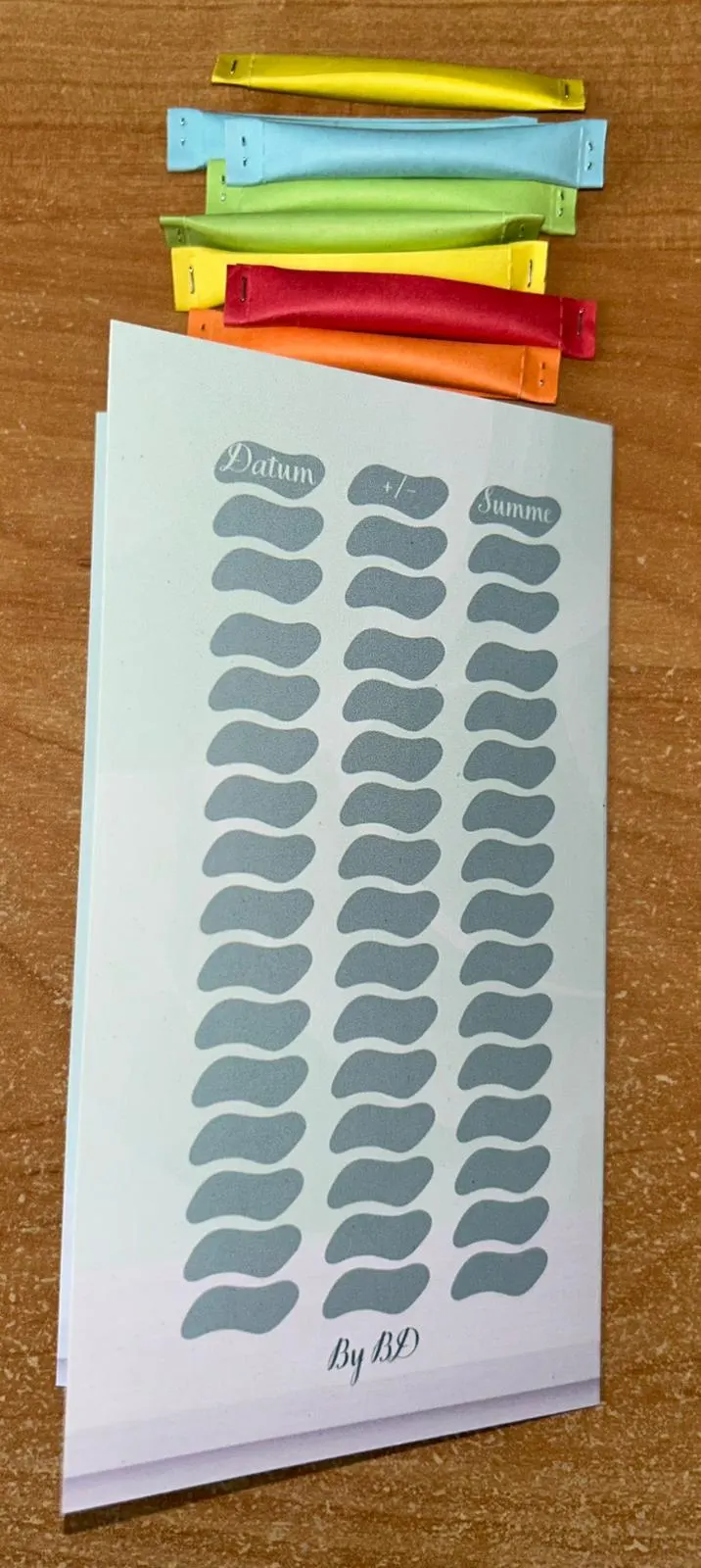 Mit passemden Tracker auf der Rückseite können eure Beträge gleich eingetragen werden.