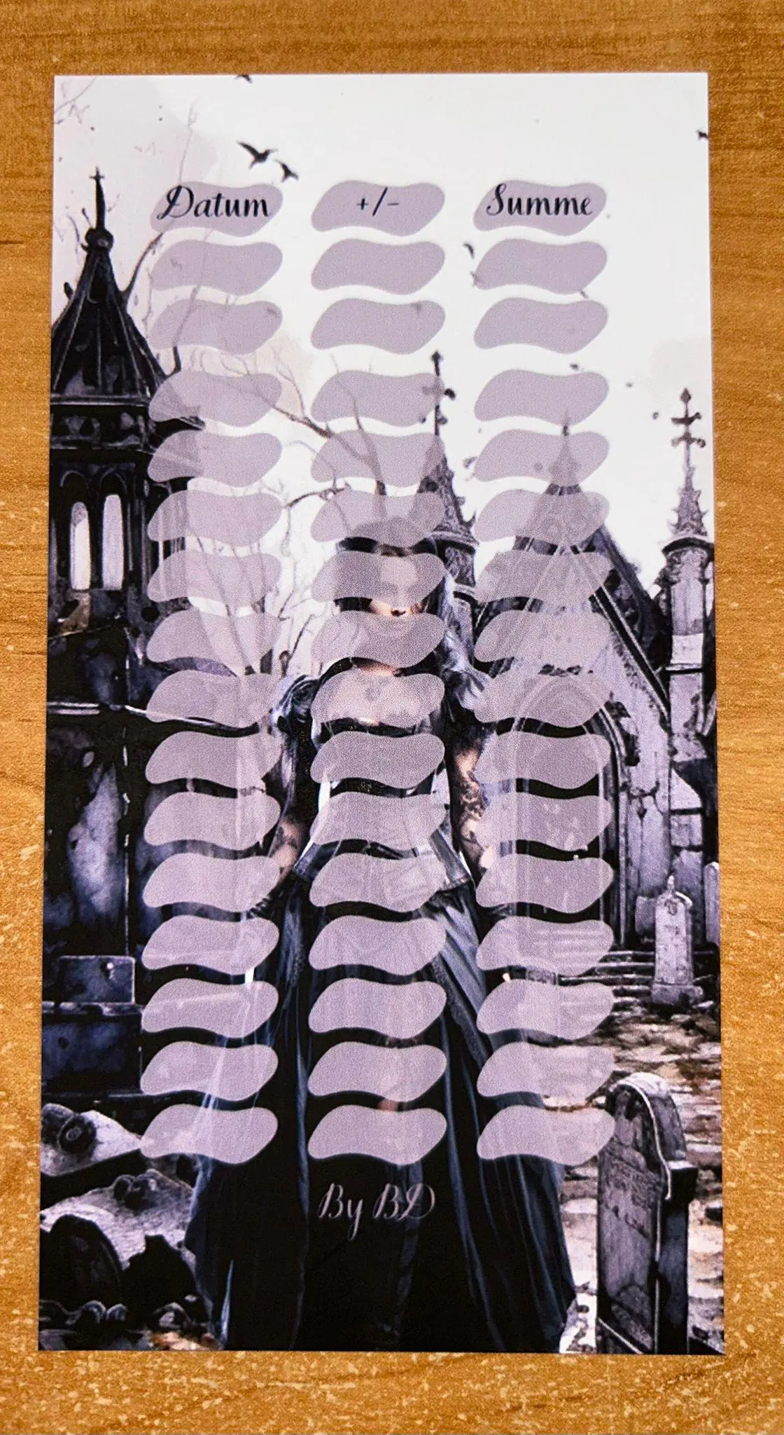 Mit passemden Tracker auf der Rückseite können eure Beträge gleich eingetragen werden.