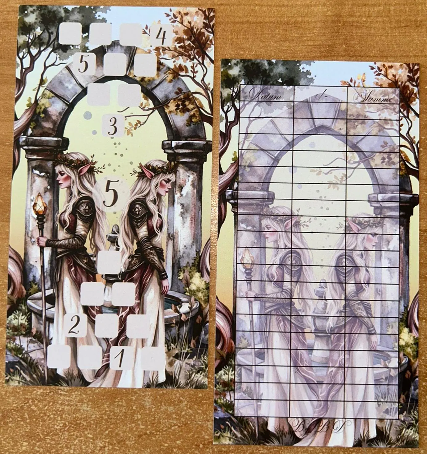 Mit passemden Tracker auf der Rückseite können eure Beträge gleich eingetragen werden.
