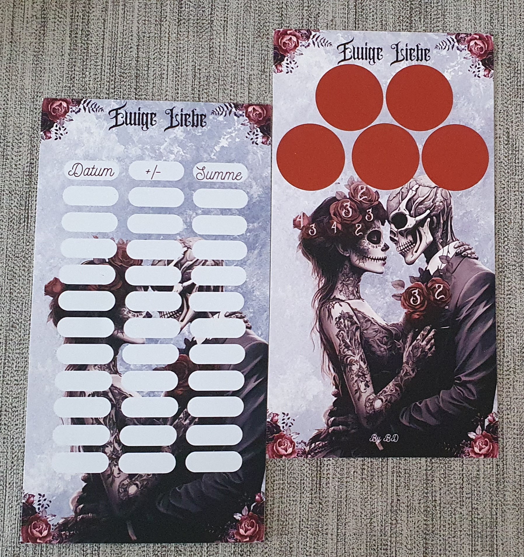 Mit passemden Tracker auf der Rückseite können eure Beträge gleich eingetragen werden.