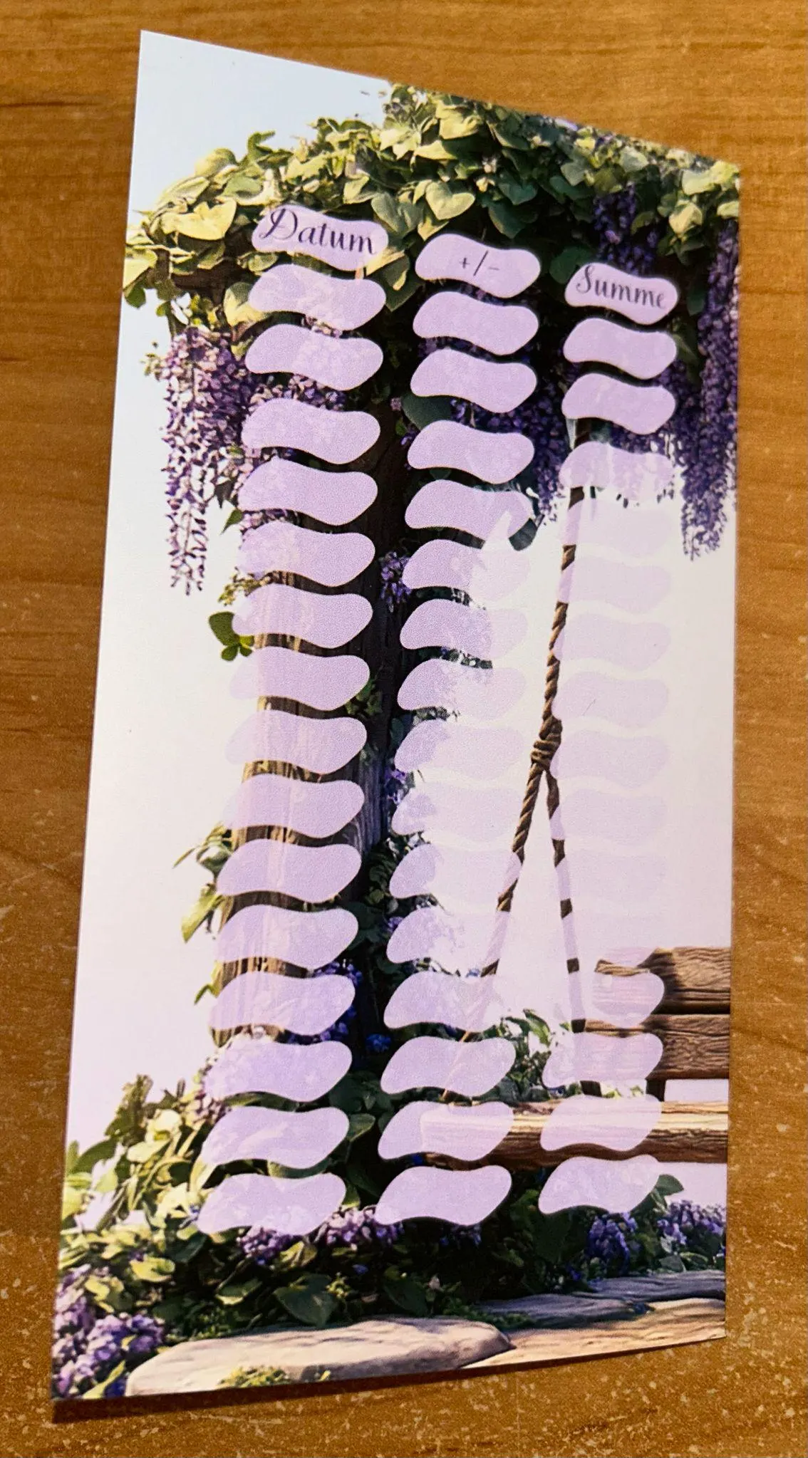 Mit passemden Tracker auf der Rückseite können eure Beträge gleich eingetragen werden.