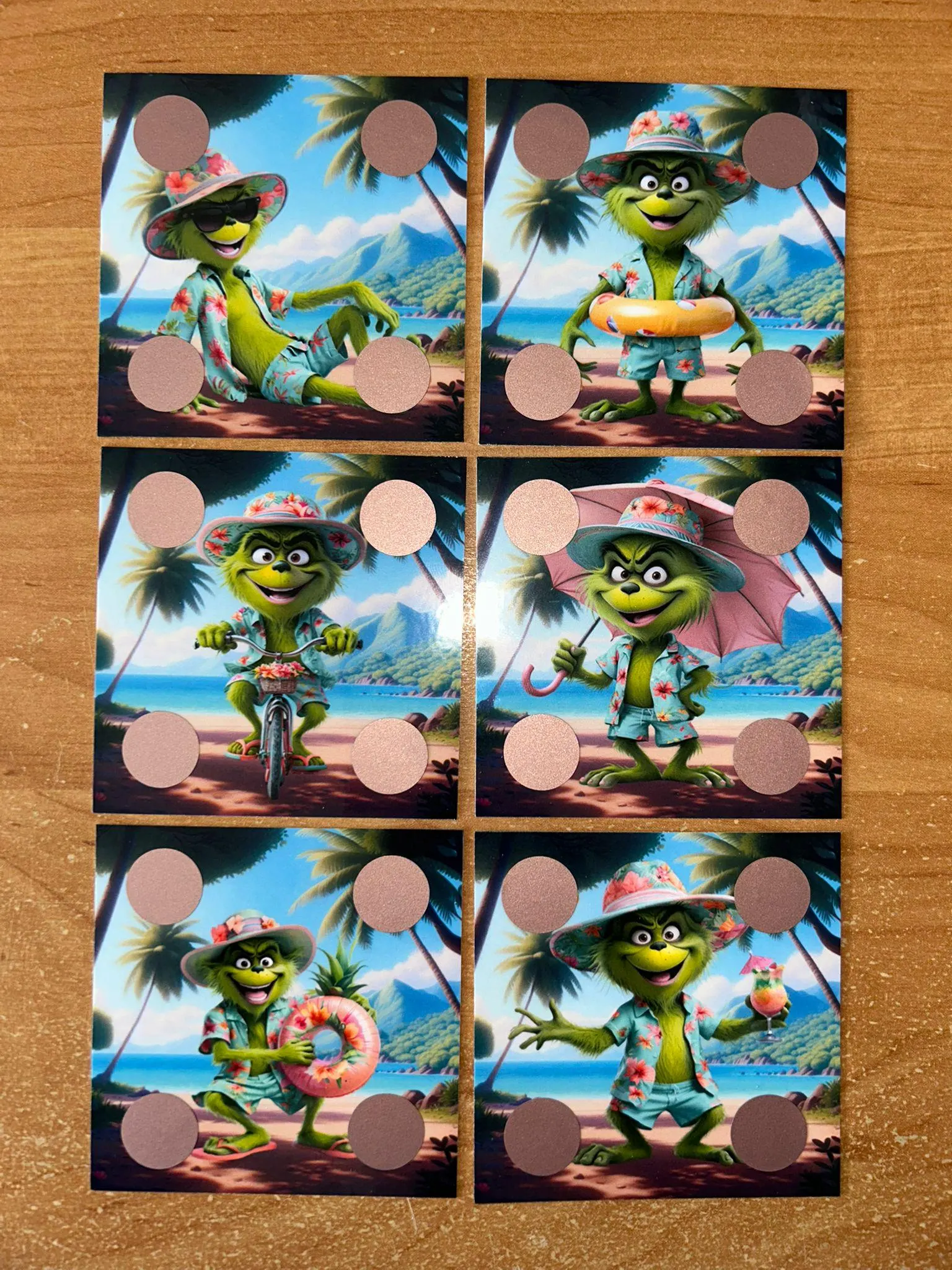 - Grinchi ist eine Abstreich und Tombola Challenge mit 8 Losen und zum Abstreichen 15€