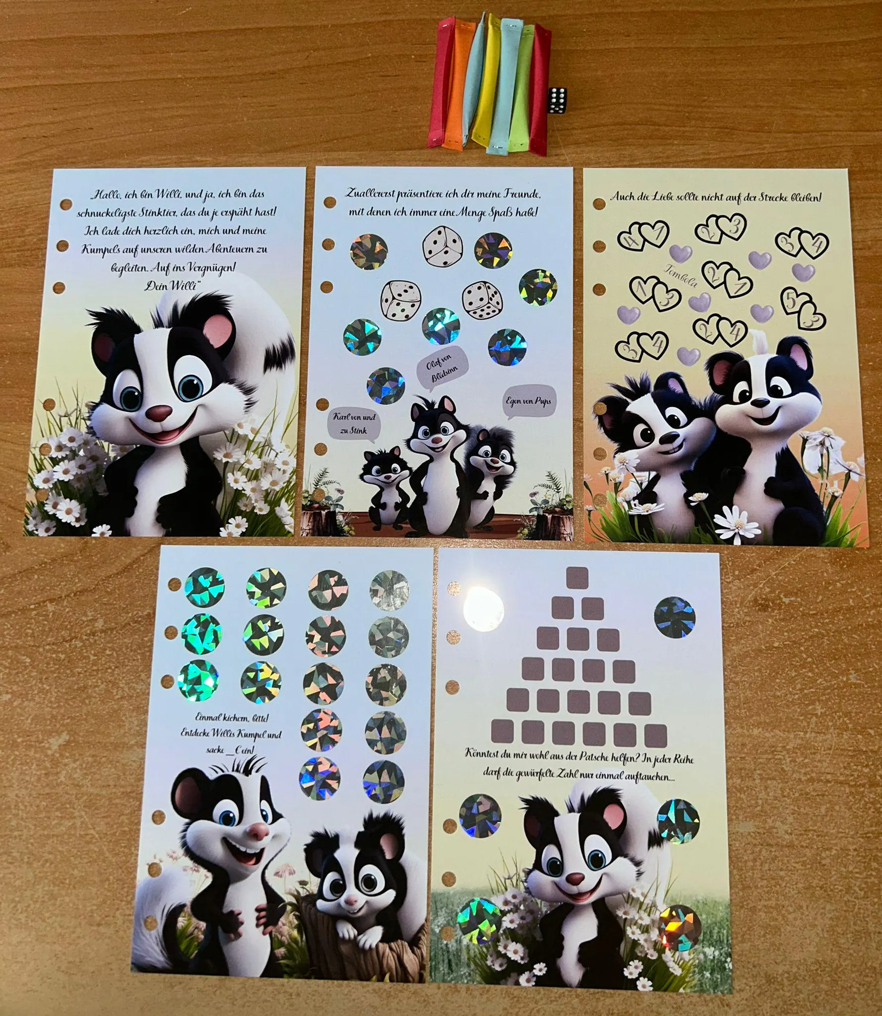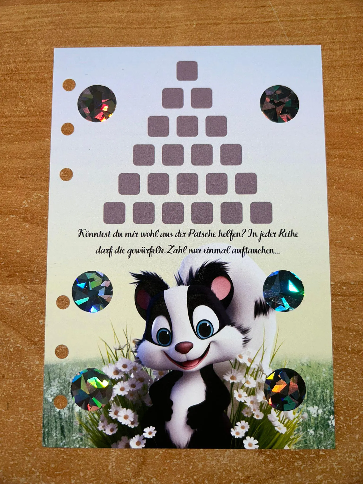 - Willi: Lese die Anleitung und Würfel drauf los, für jede abgeschlossene Reihe darfst du ein Feld frei rubbeln.