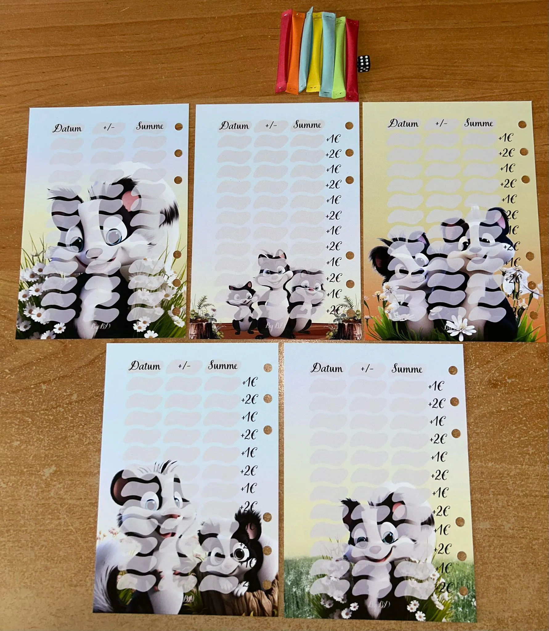 Mit passemden Tracker auf der Rückseite können eure Beträge gleich eingetragen werden.
