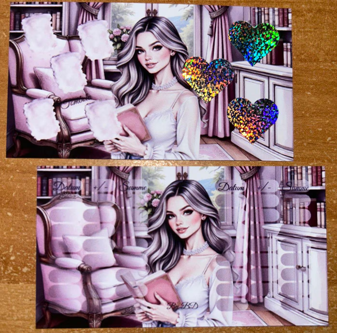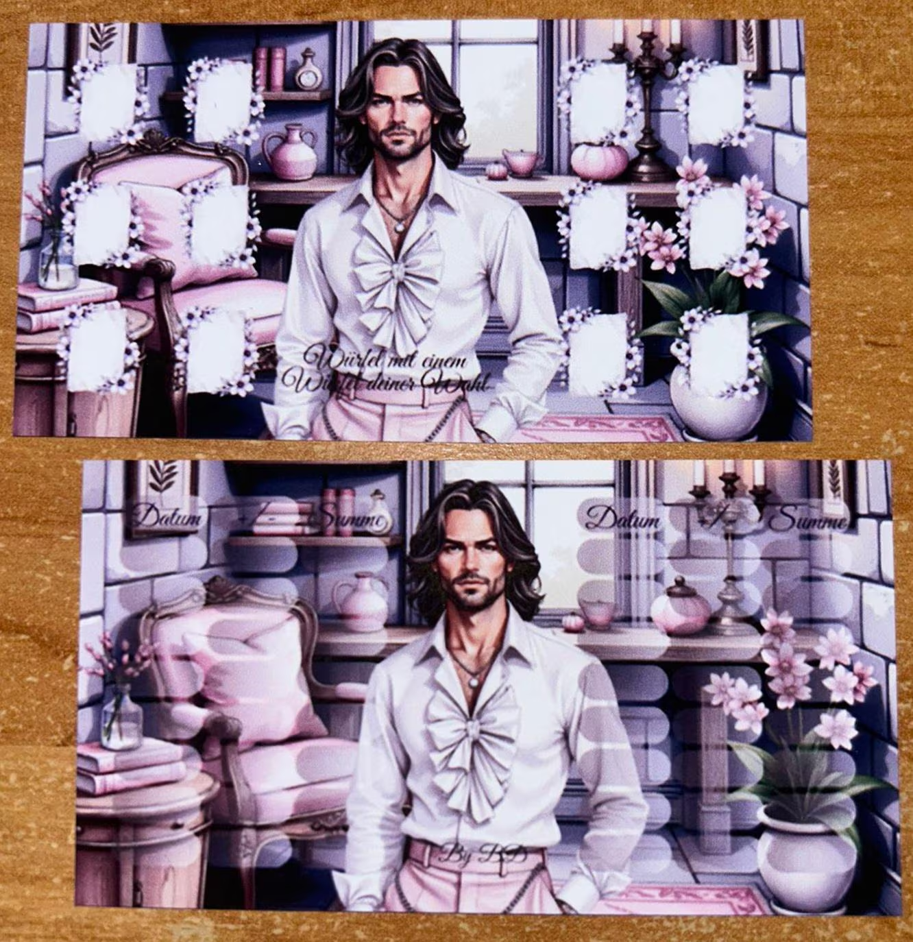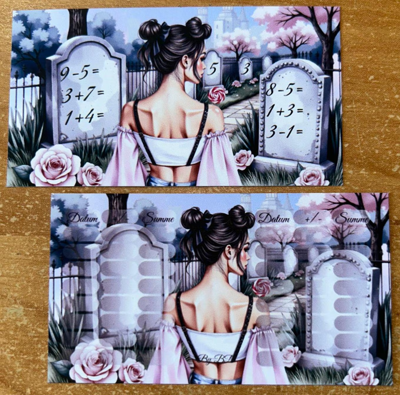 ** Die Maße und Farben können leicht abweichen, da die Produckte von mir auf einem Tintenstrahldrucker ausgedruckt und manuell zugeschnitten werden.