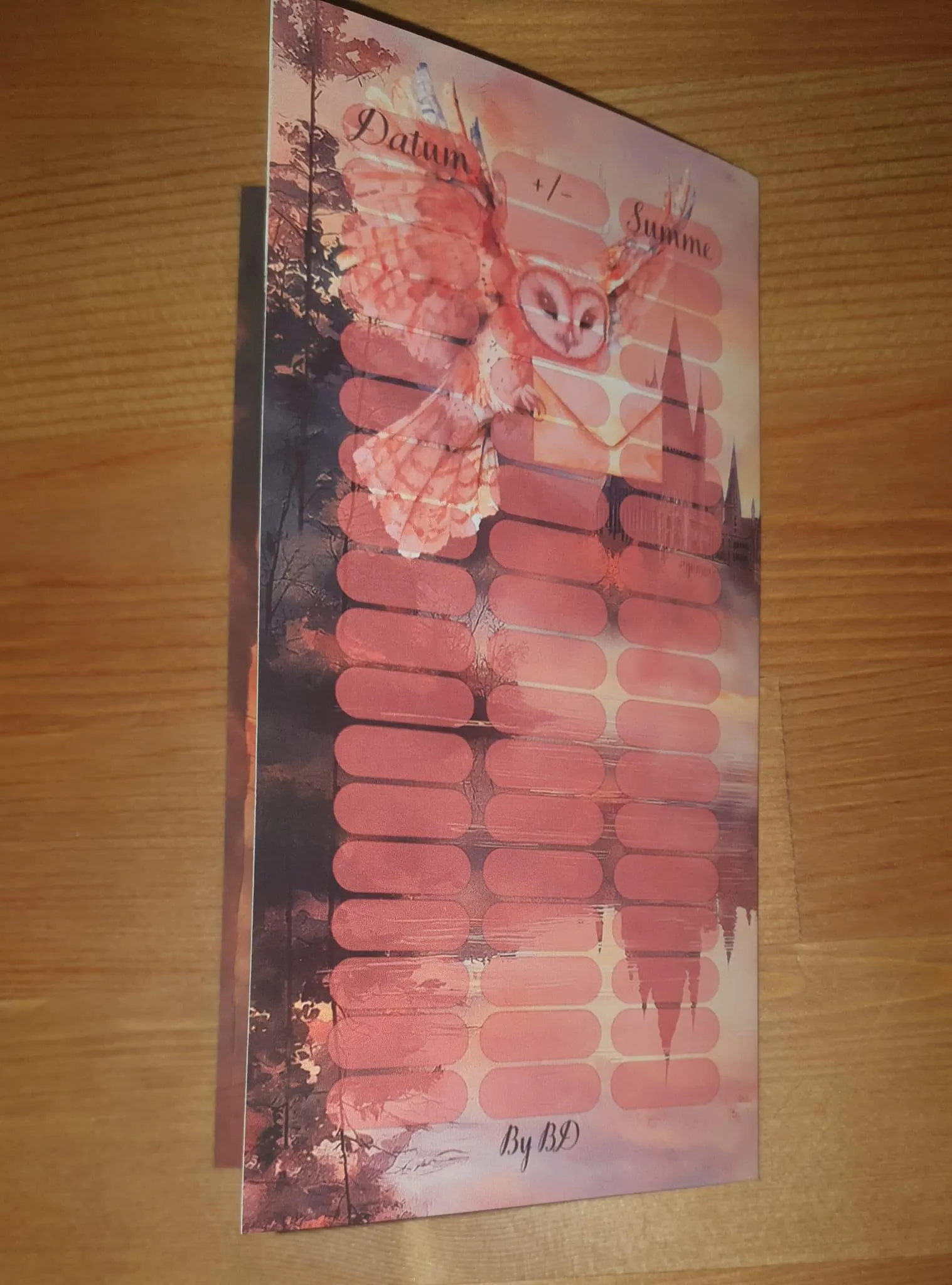 Mit passemden Tracker auf der Rückseite können eure Beträge gleich eingetragen werden.