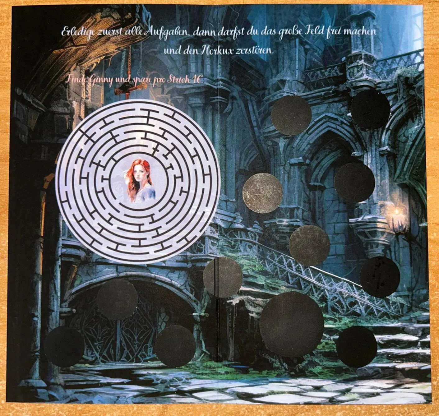 - Das Tagebuch von Tom Riddle: Ist ein Labyrinth wo du 1€ pro strich sparst und dann noch Rubbeln kannst ( 1€-5€ zusammen 38€).