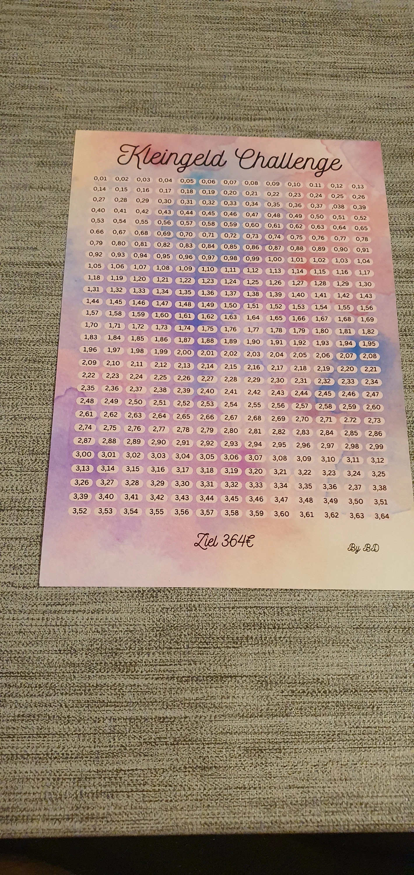 Kleingeld Challenge für A5 , ist eine Abstreich Challenge.
