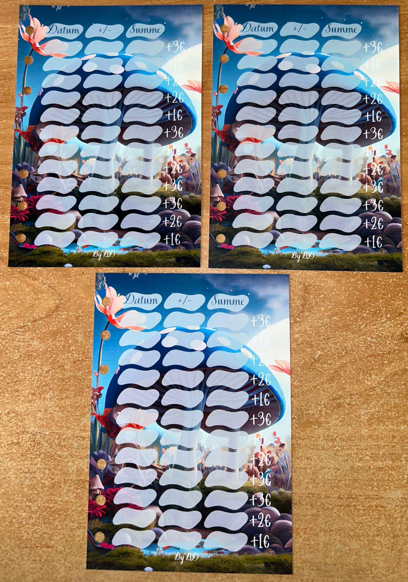 Mit passemden Tracker auf der Rückseite können eure Beträge gleich eingetragen werden.
