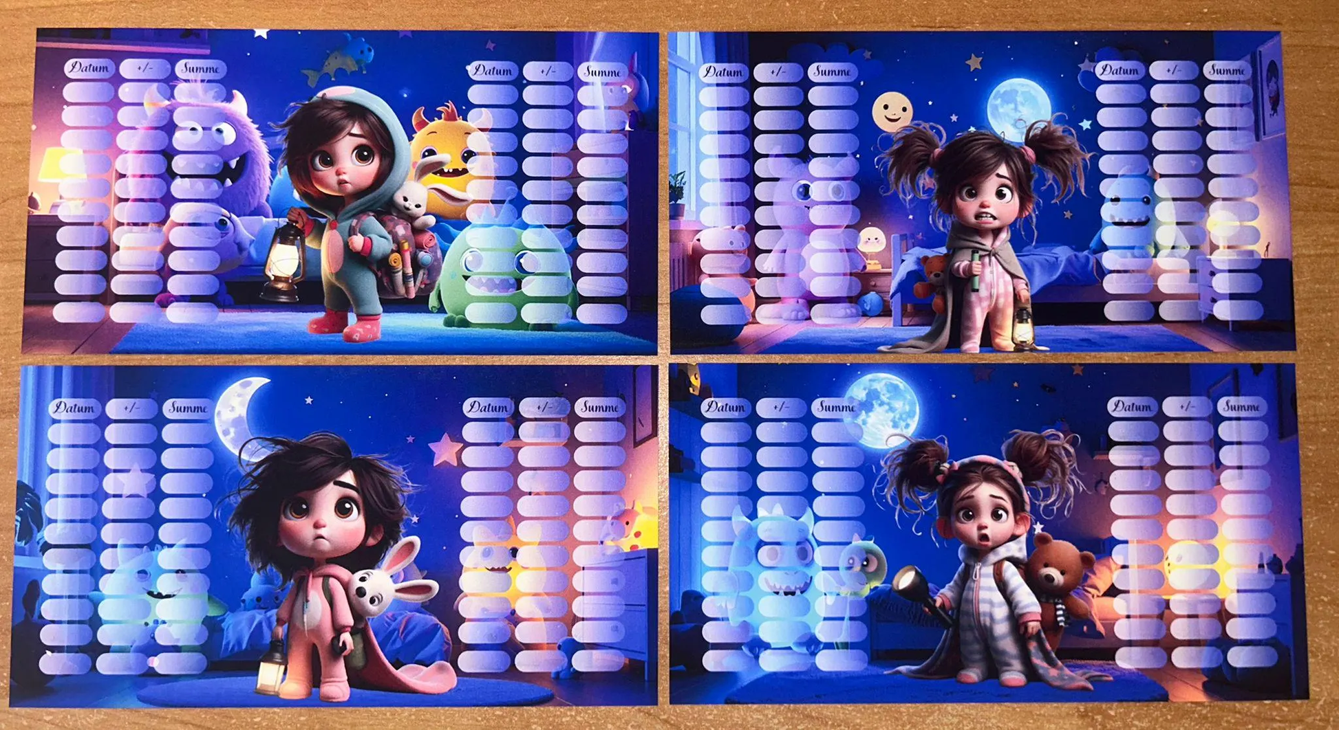 ** Die Maße und Farben können leicht abweichen, da die Produckte von mir auf einem Tintenstrahldrucker ausgedruckt und manuell zugeschnitten werden.