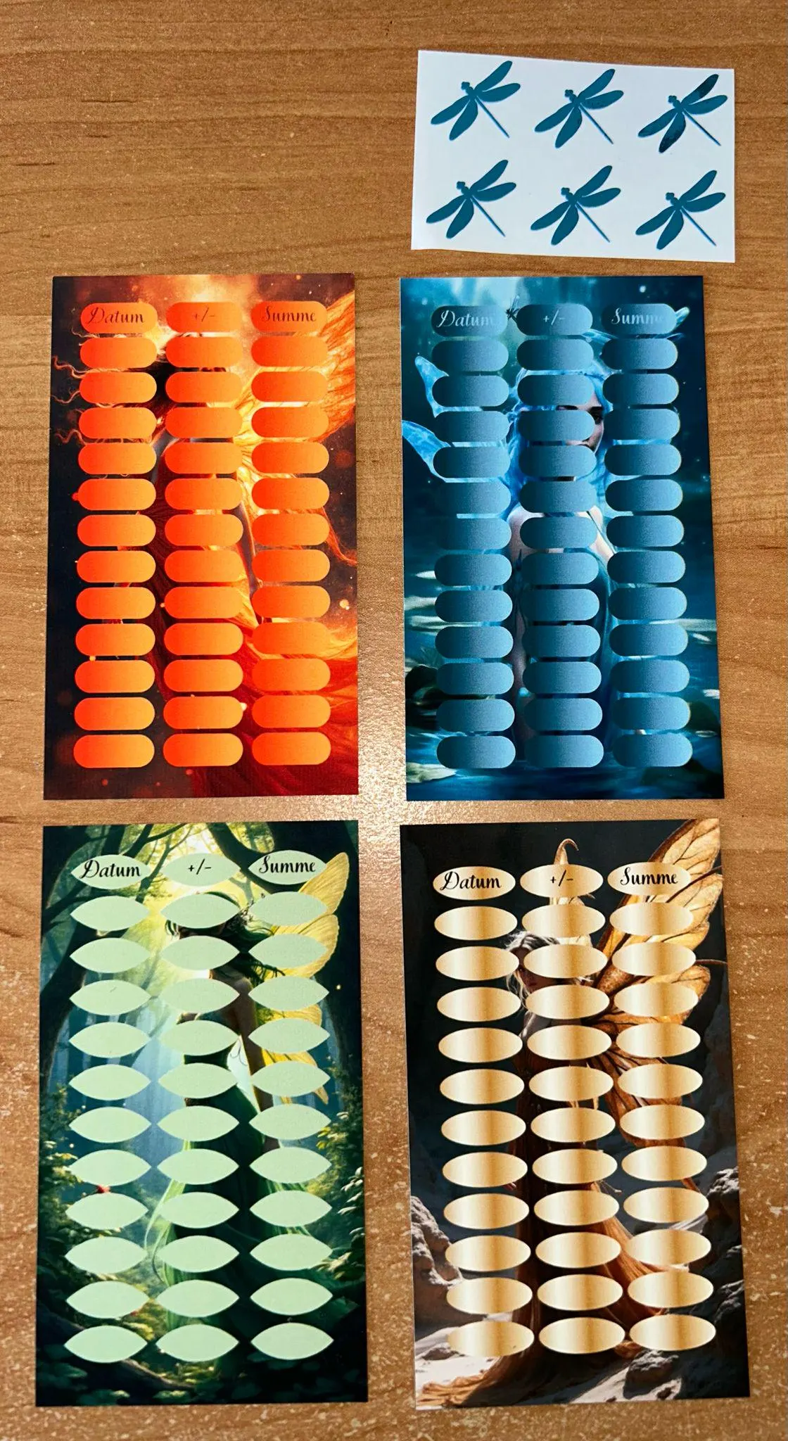 Mit passemden Tracker auf der Rückseite können eure Beträge gleich eingetragen werden.