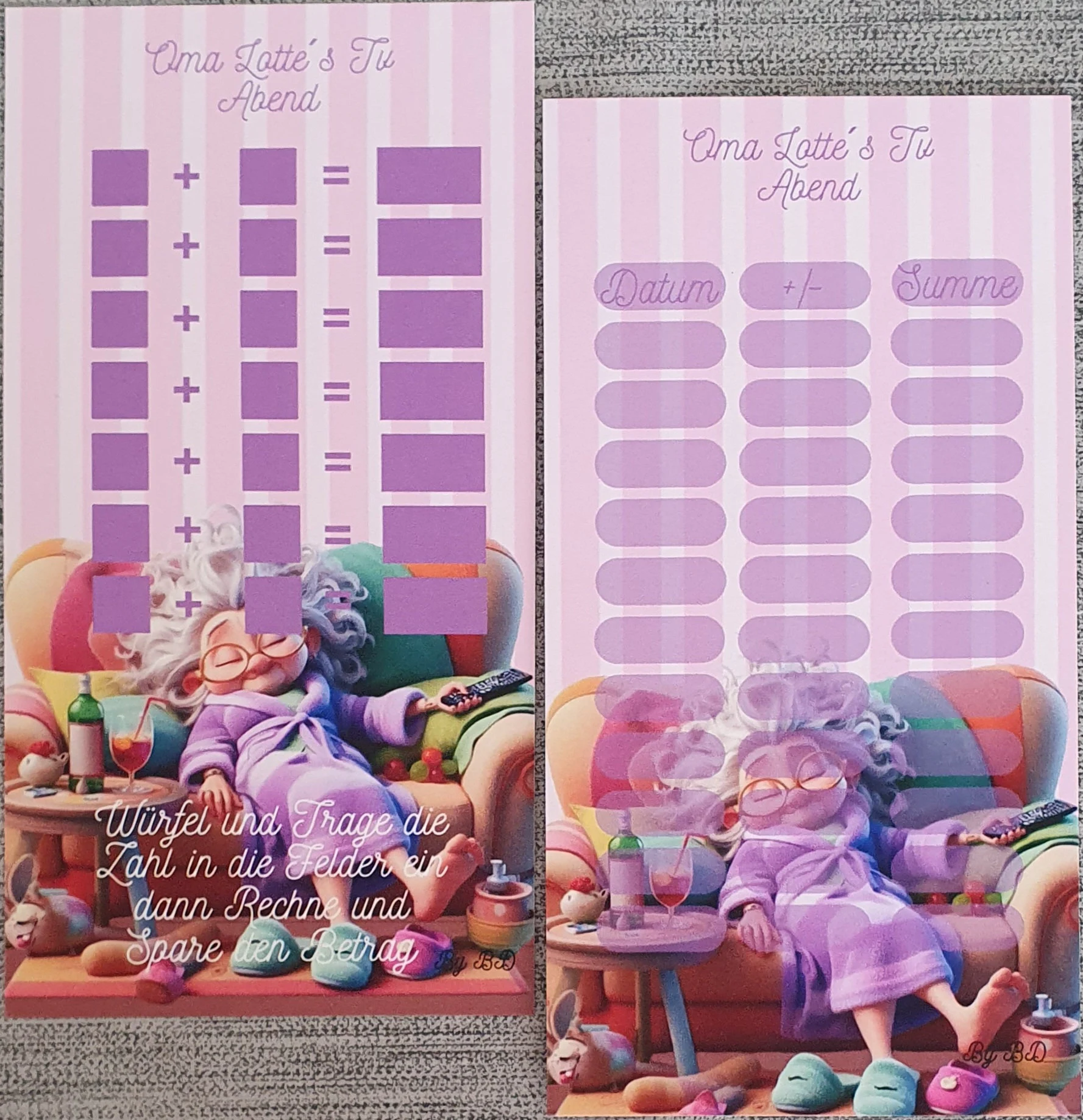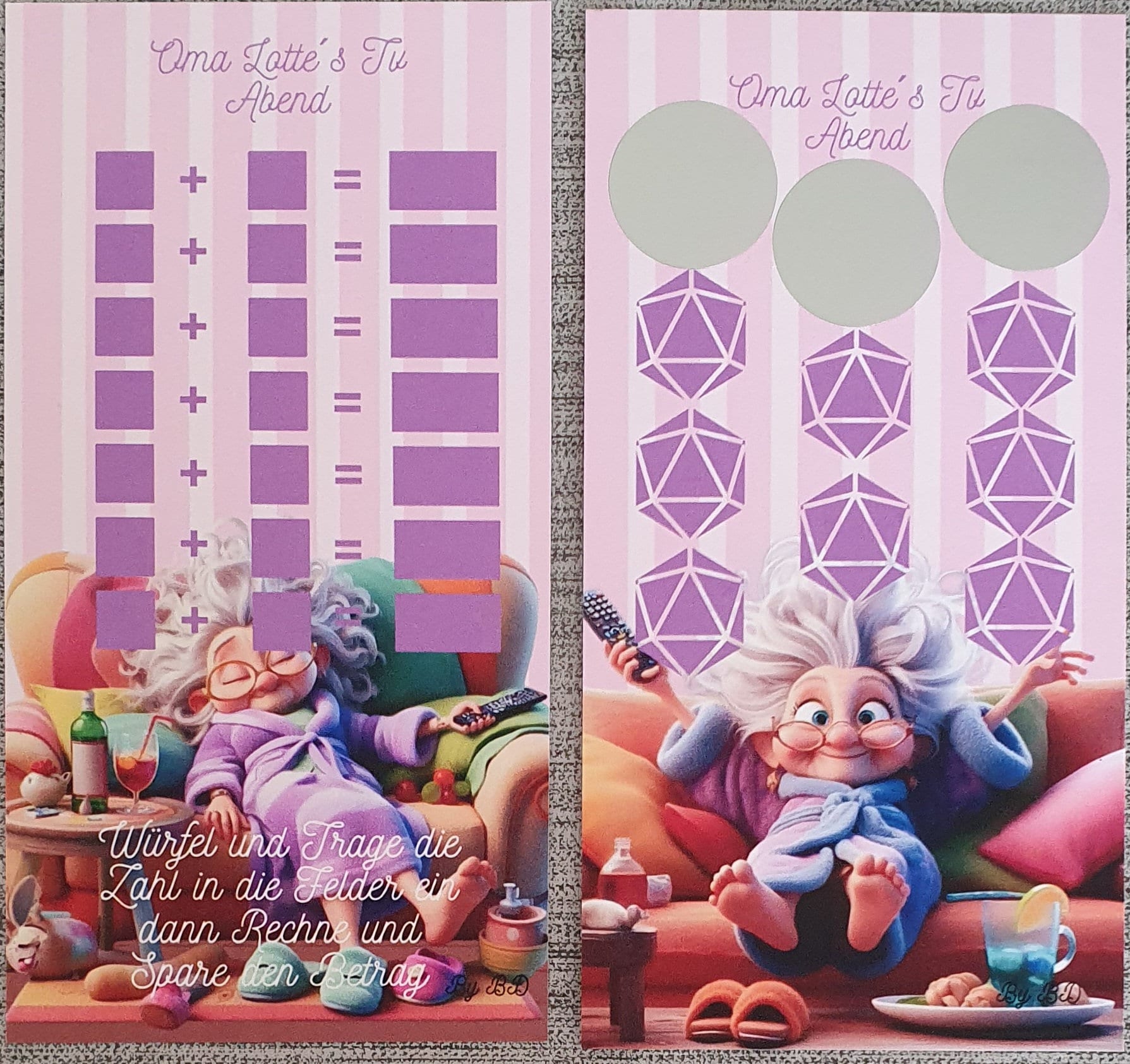 Oma Lotte´s Tv Abend sind 2 Challenge in einem Set zum Würfel Rubbeln und Rechnen.
