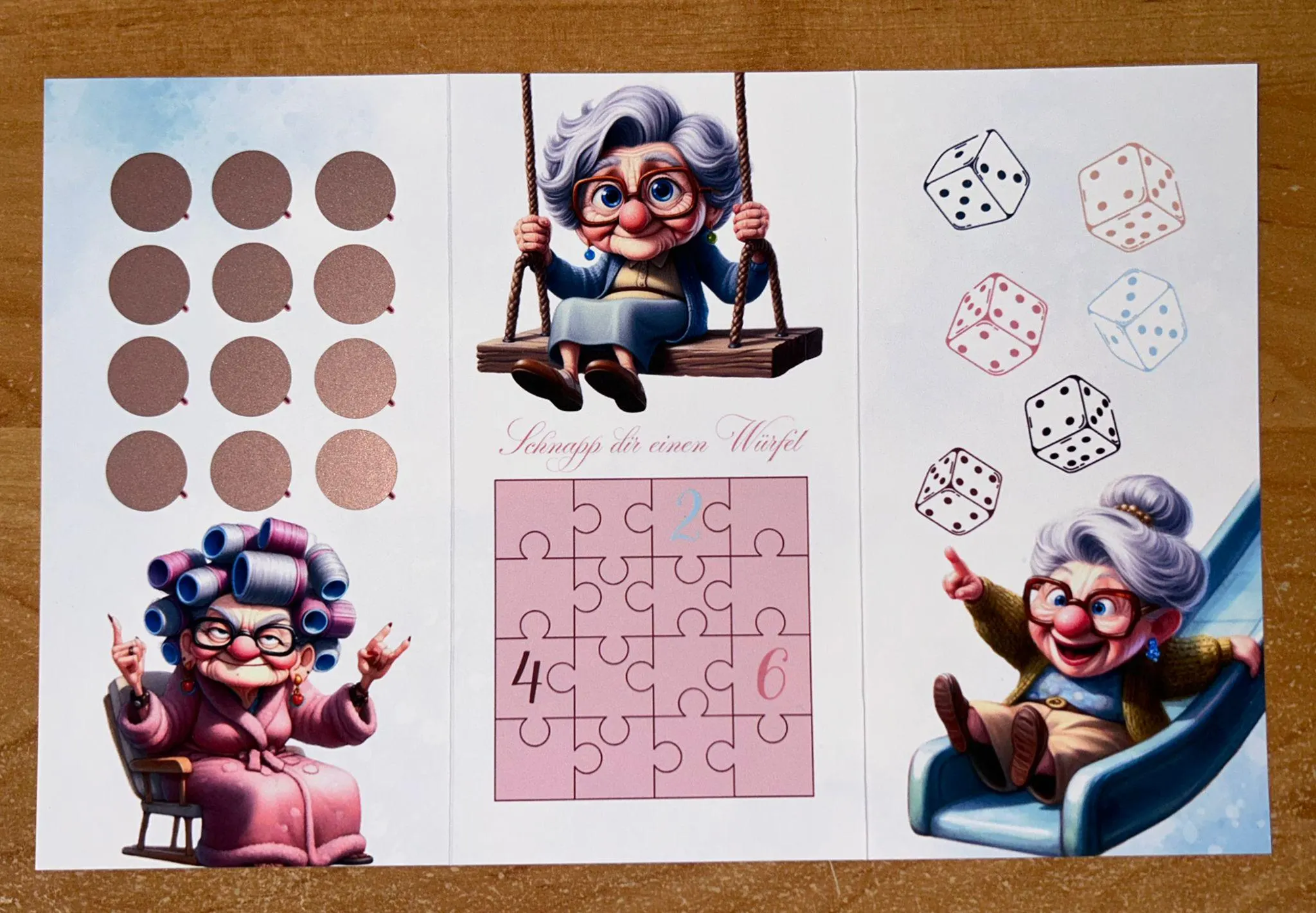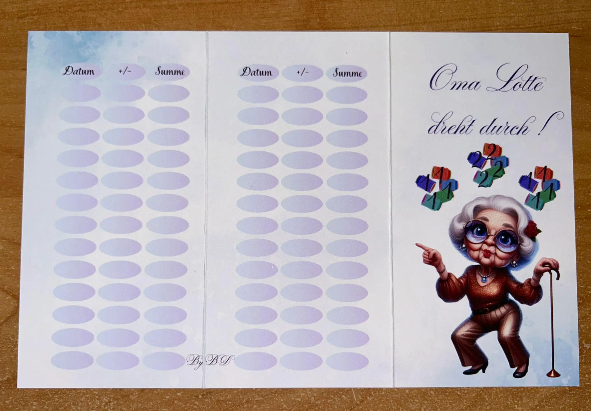 Oma Lotte dreht durch ist eine 3er Klappkarte für A6 Binder