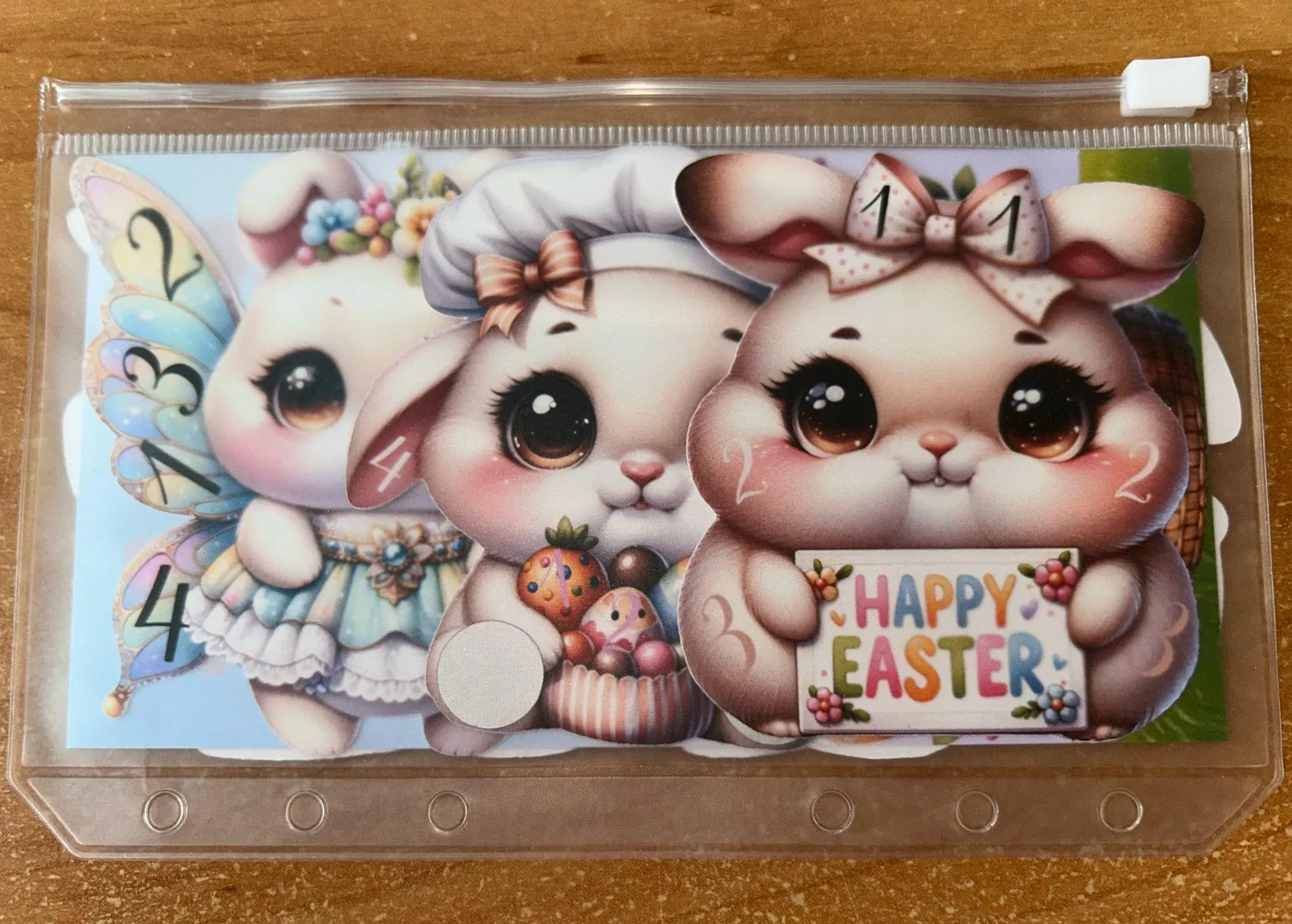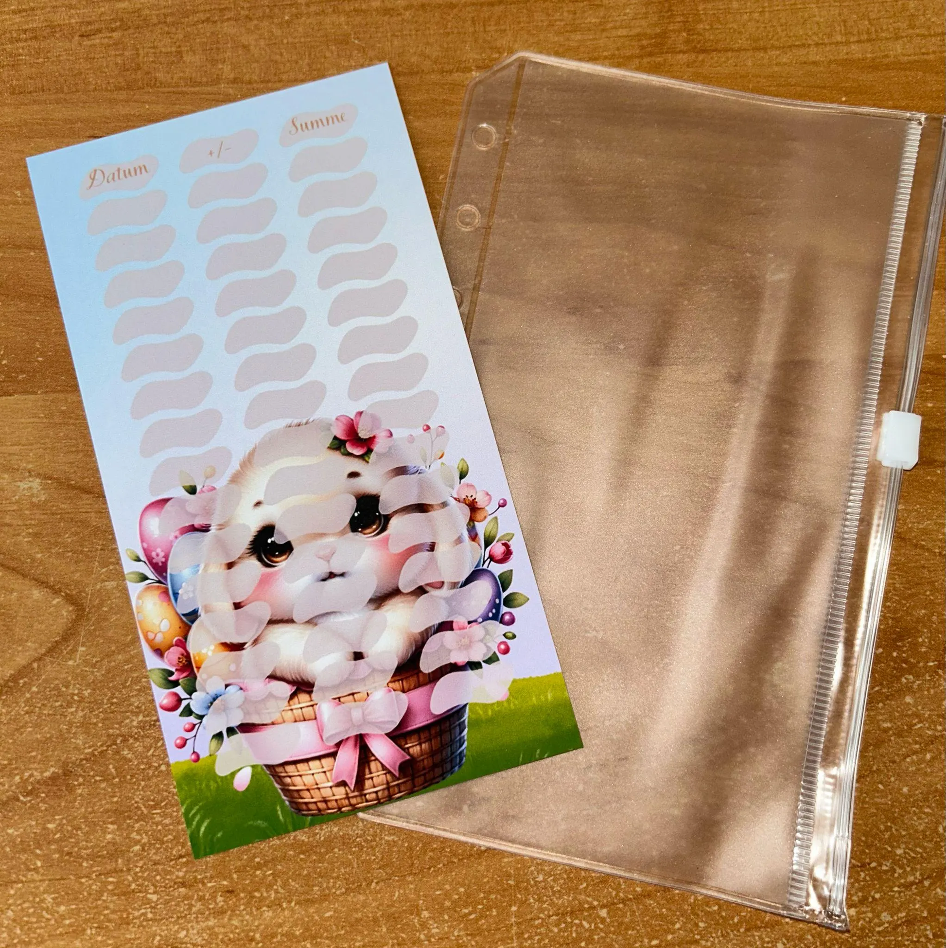 Die Süßen Mini Osterhasen Challenge mit 6 kleinen Osterhasen zum besparen. Dazu bekommt ihr eine Zipper Hülle und einen beidseitig Bedruckenten Tracker.