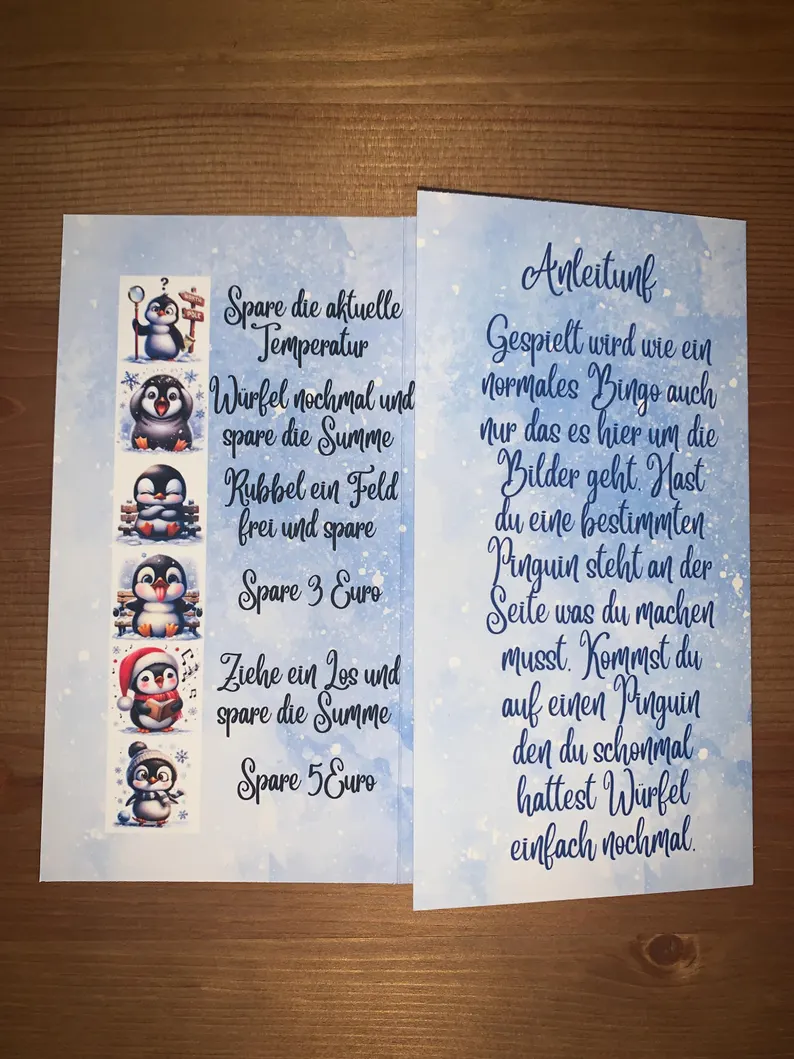 Pinguin Bingo Klapp A6 Budgeting Sparen Challenge