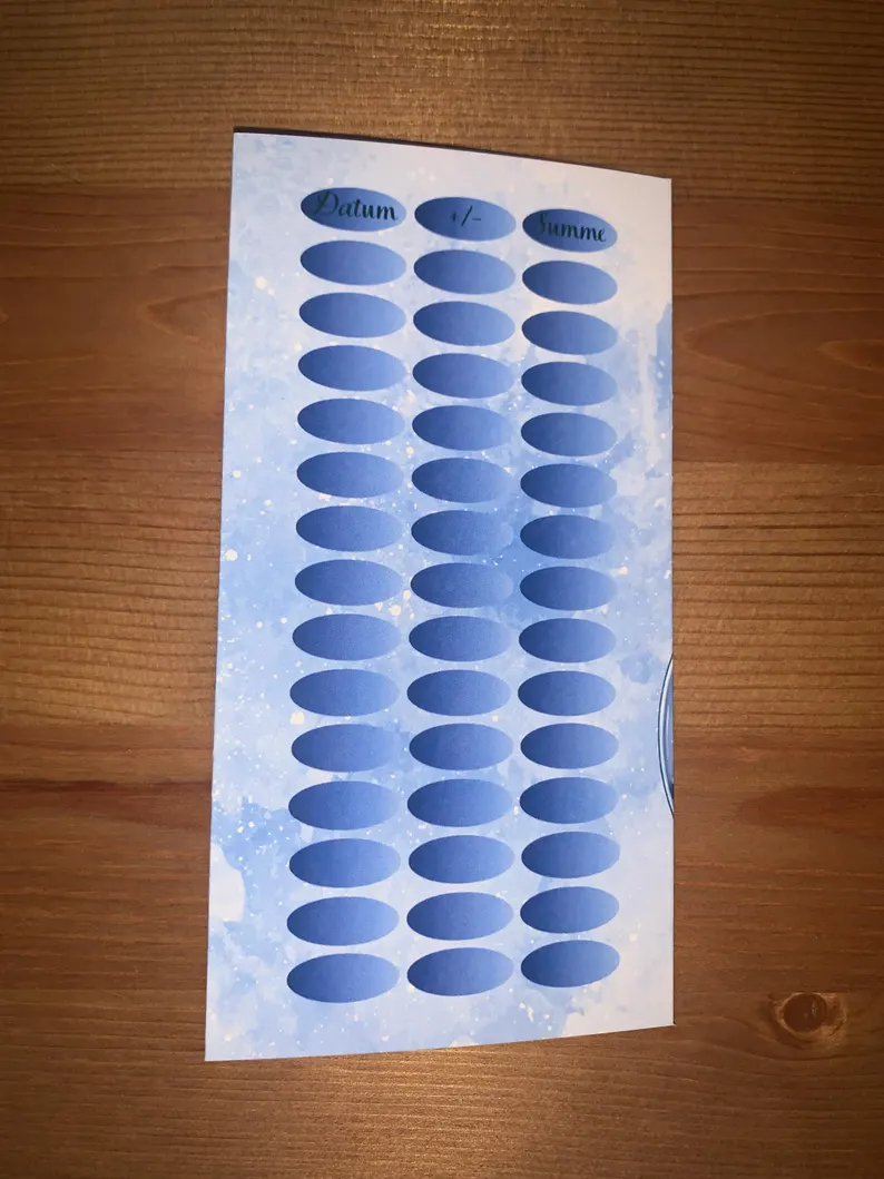 Mit passemden Tracker auf der Rückseite können eure Beträge gleich eingetragen werden.