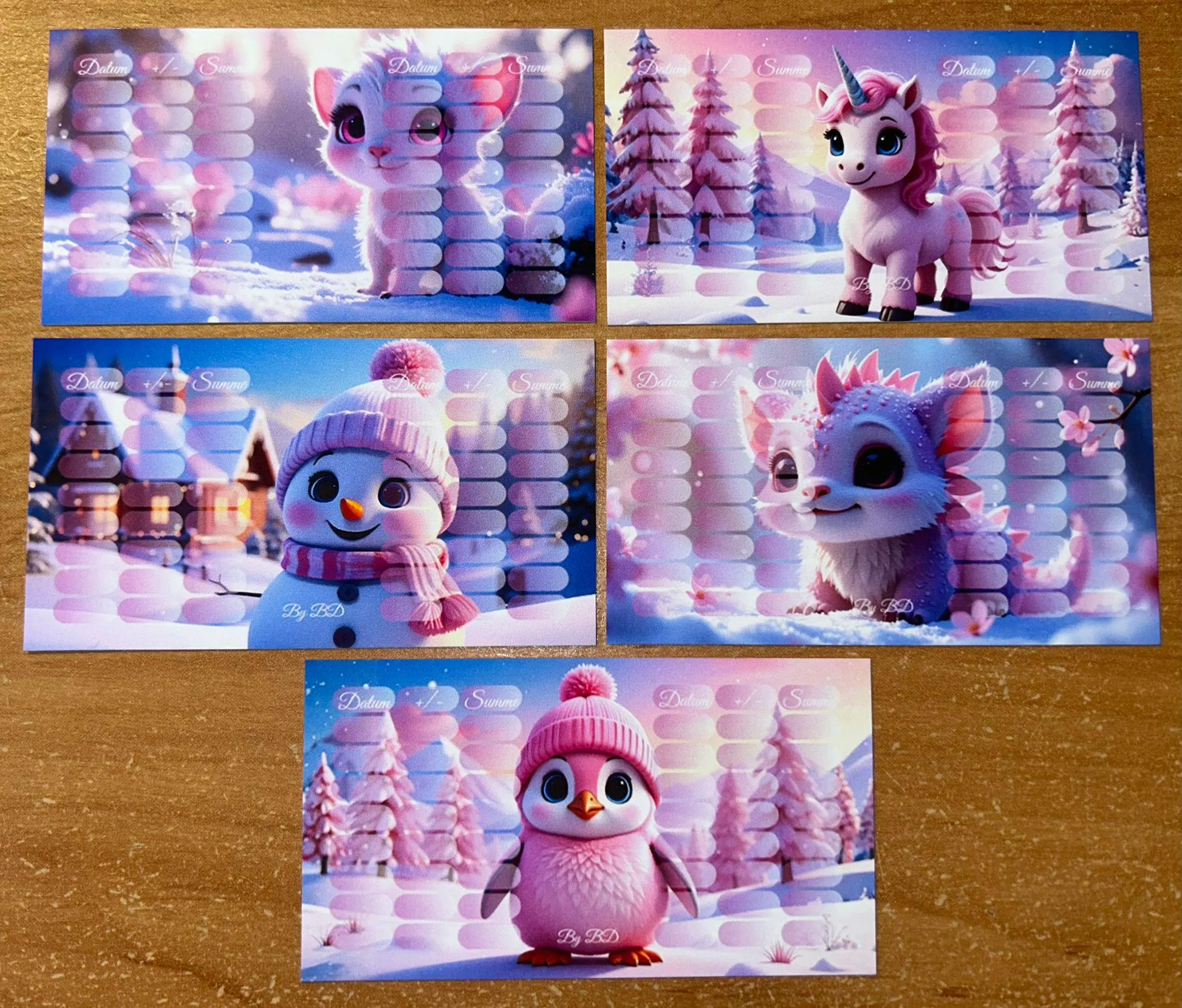 Mit passemden Tracker auf der Rückseite können eure Beträge gleich eingetragen werden.
