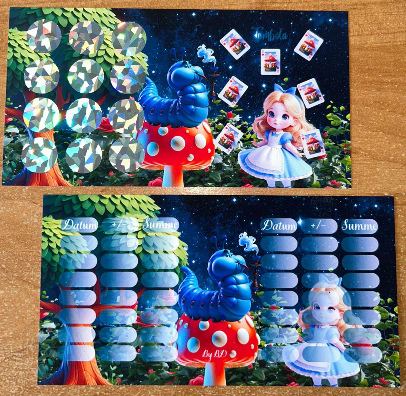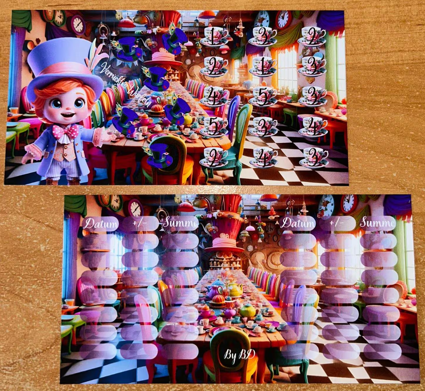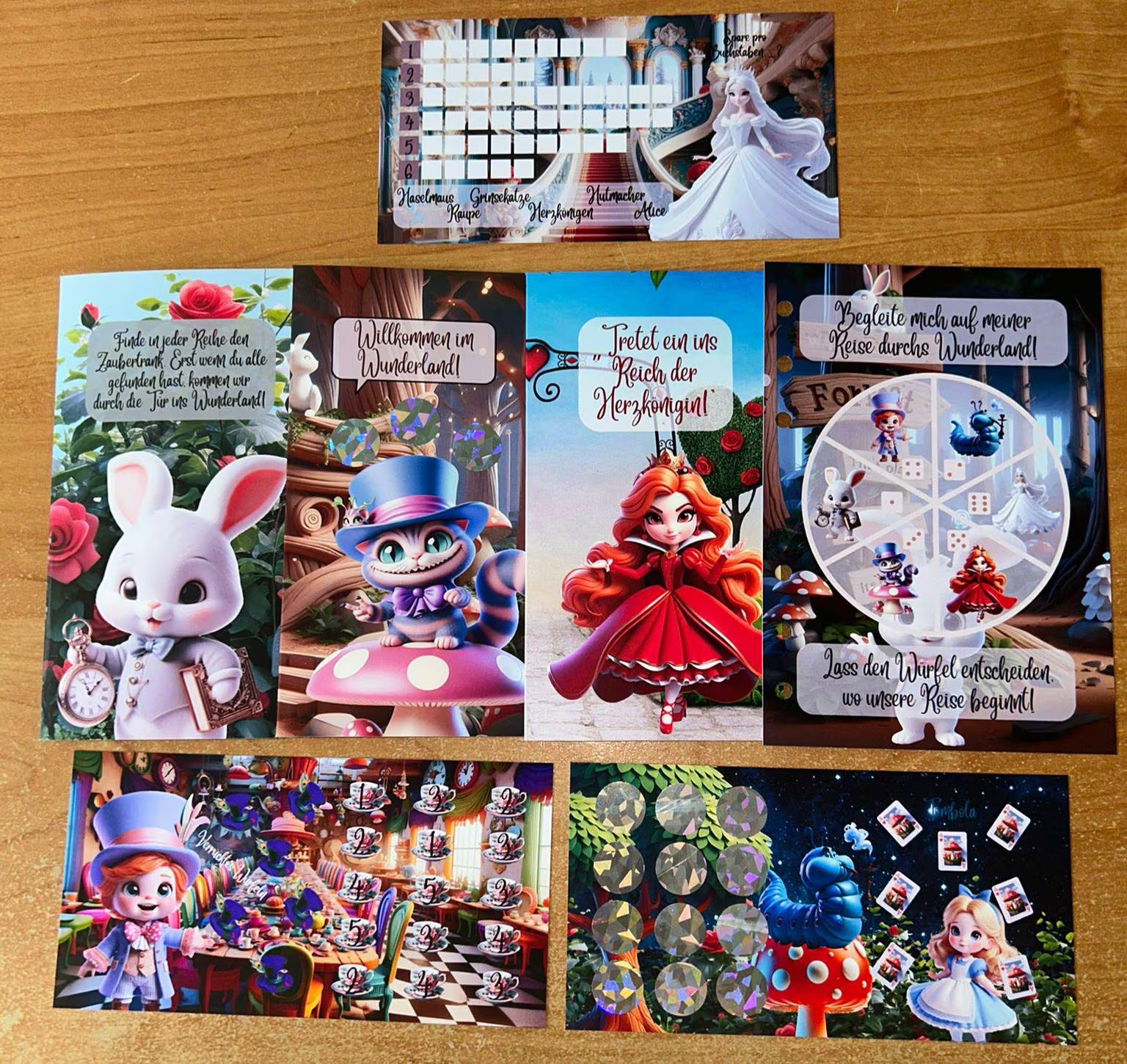 Reise ins Wunderland A6 ist ein Gelochtes Deckblatt/ Spiel mit Tracker hier entscheidet der Würfel mit welcher karte angefangen wird.