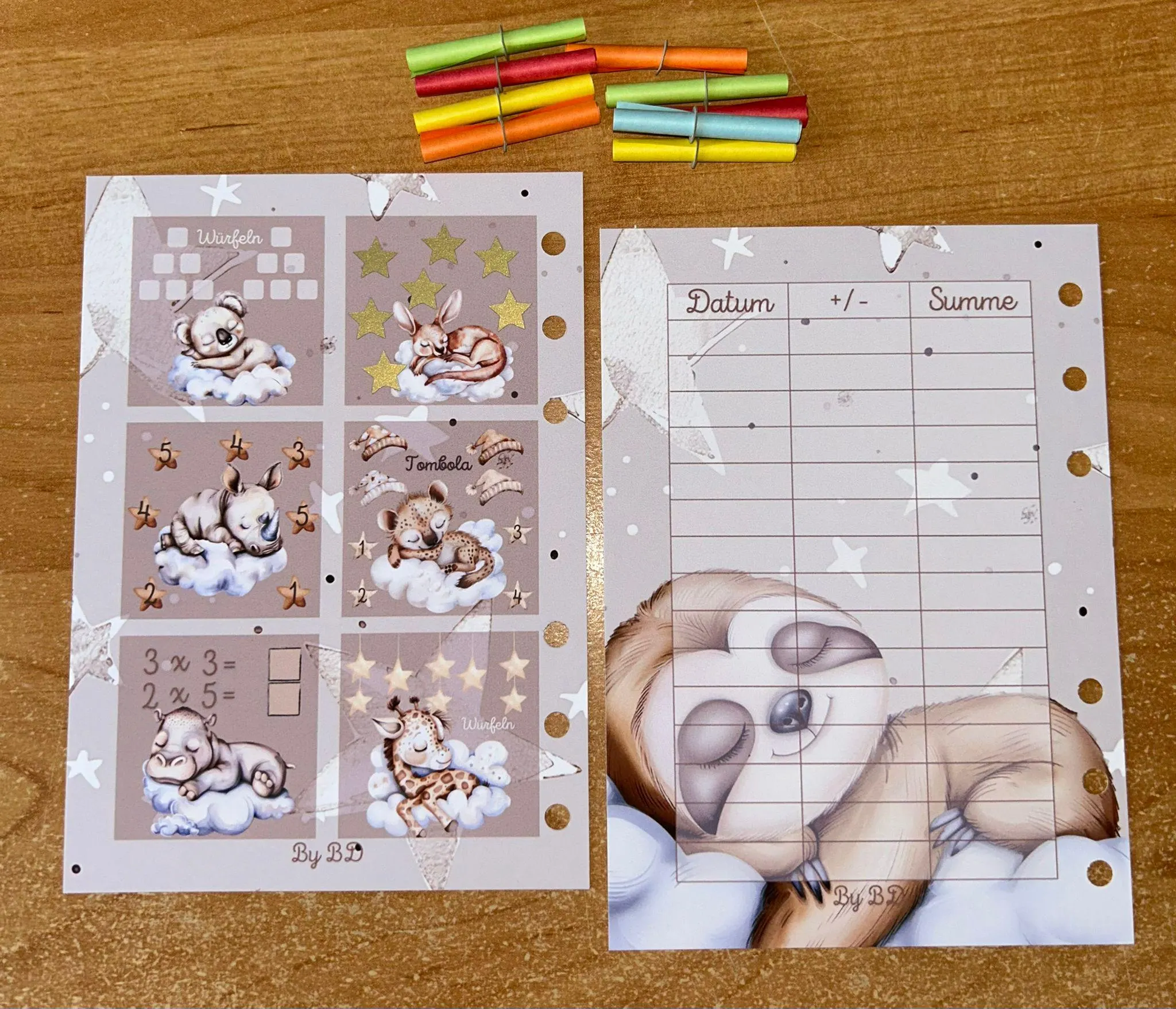 ** Die Maße und Farben können leicht abweichen, da die Produckte von mir auf einem Tintenstrahldrucker ausgedruckt und manuell zugeschnitten werden.