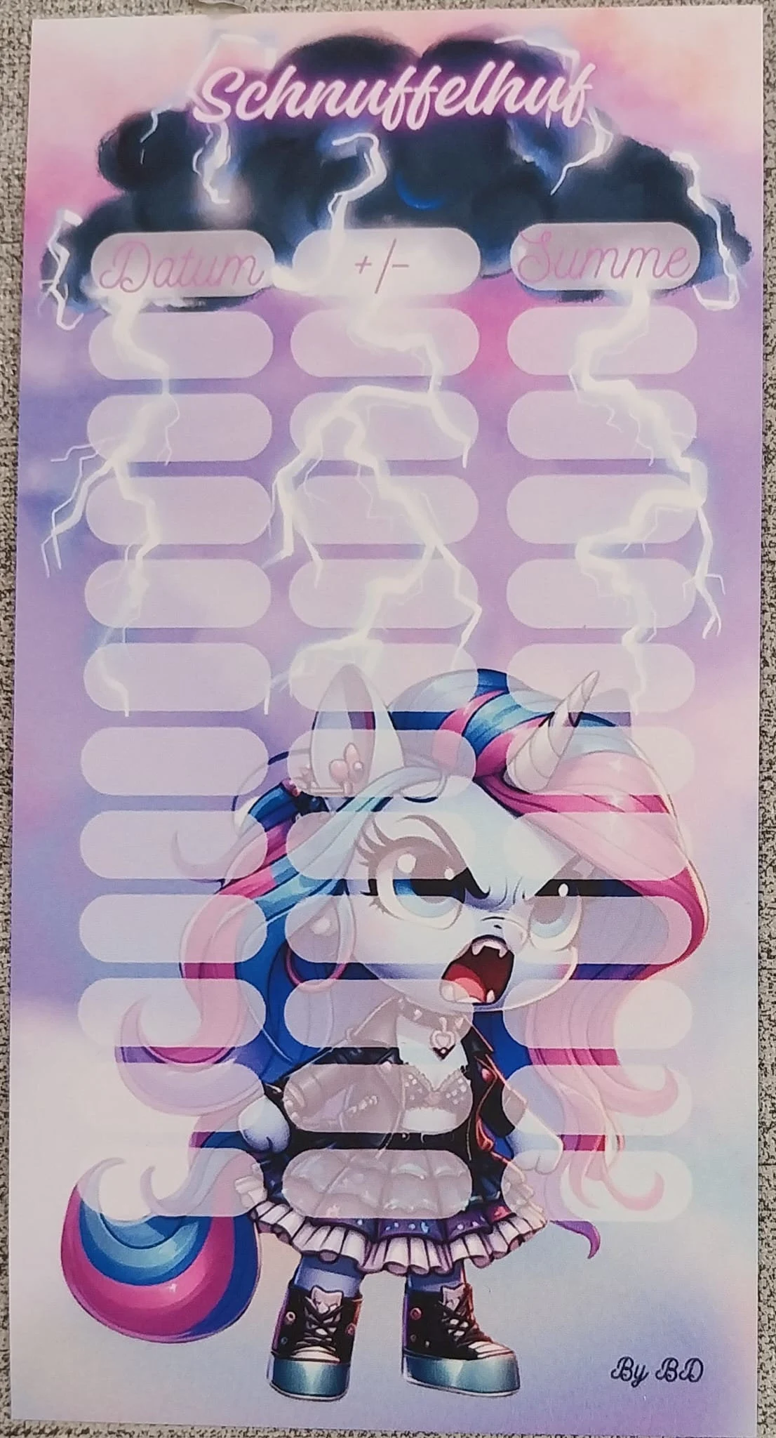 Mit passemden Tracker auf der Rückseite können eure Beträge gleich eingetragen werden.