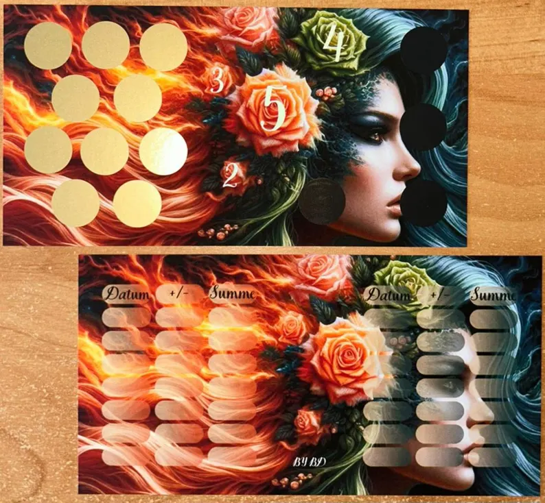 Mit passemden Tracker auf der Rückseite können eure Beträge gleich eingetragen werden.