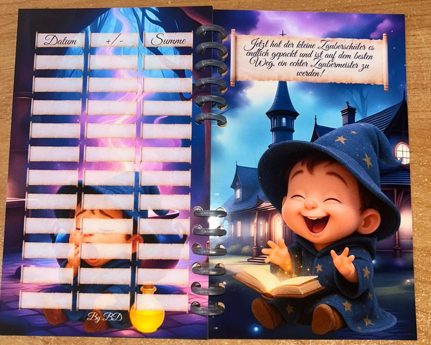 Sparbuch Der kleine Zauberschüler Challenge A6 Budgeting Sparen