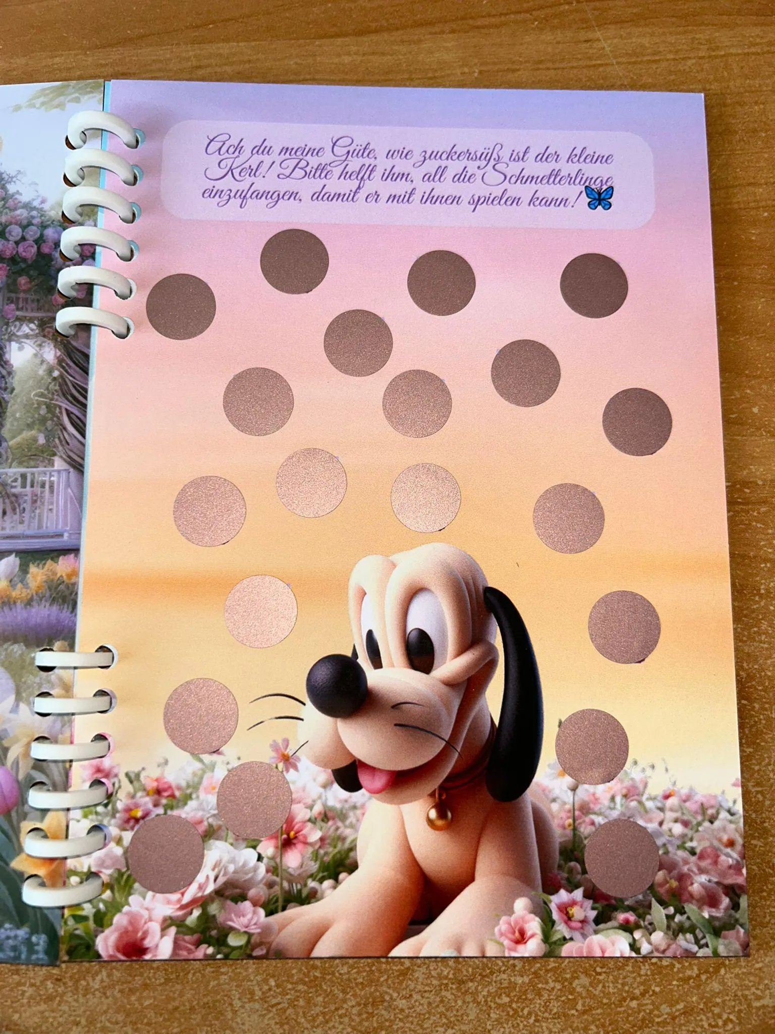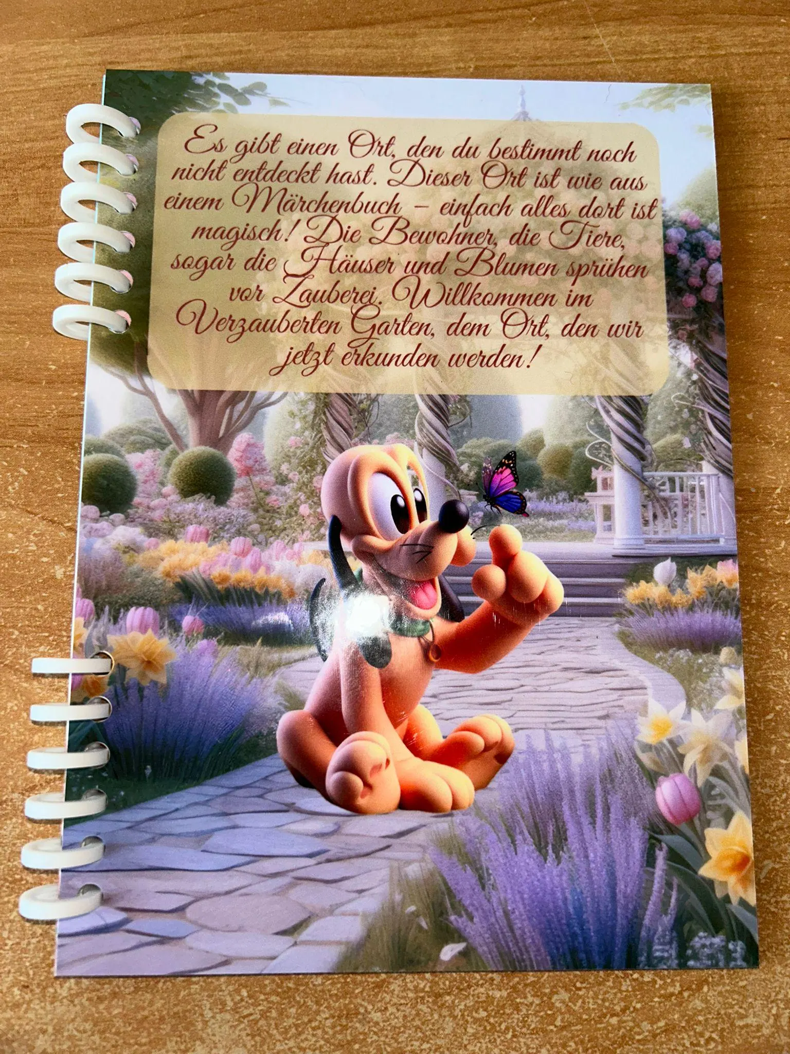 Sparbuch Der Verzauberte Garten ist in Format A5. Das Buch hat insgesamt 10 Seiten wo die Einleitung und der Abspann Glänzend laminiert sind.