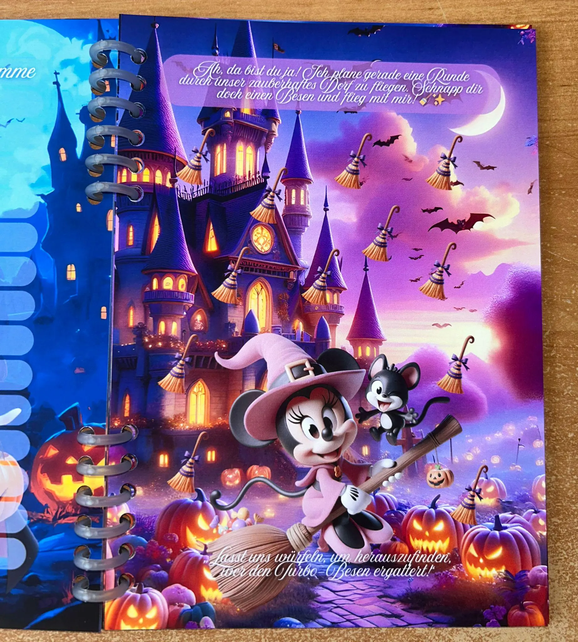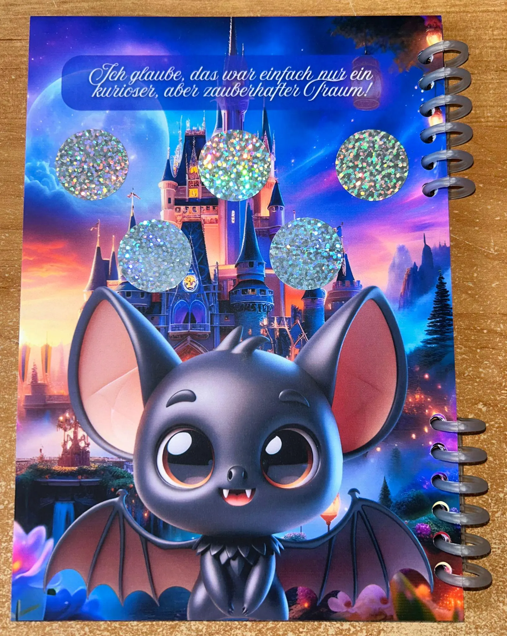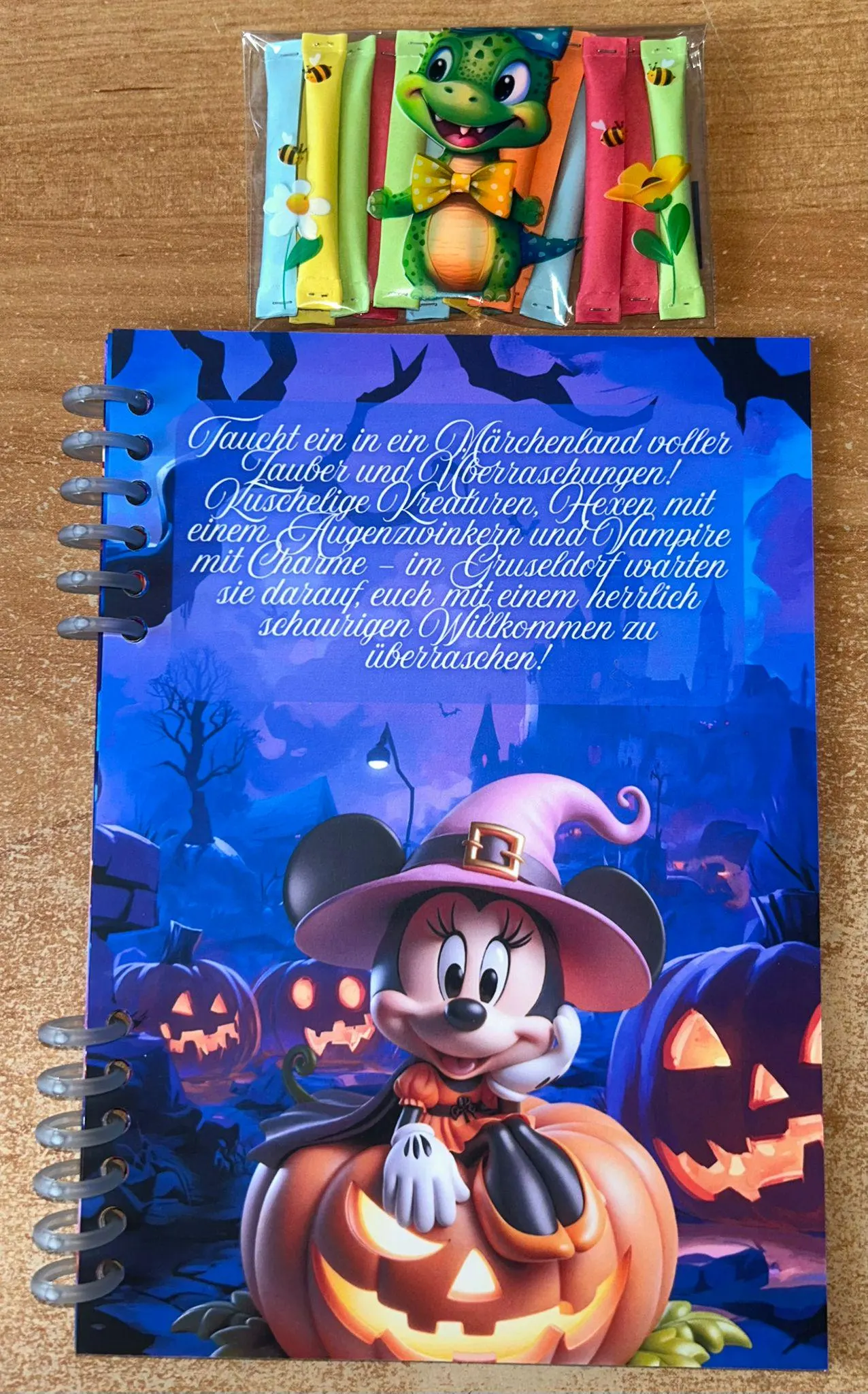 Sparbuch Schaurig schön ist in Format A5. Das Buch hat insgesamt 10 Seiten wo die Einleitung und der Abspann Matt laminiert sind.