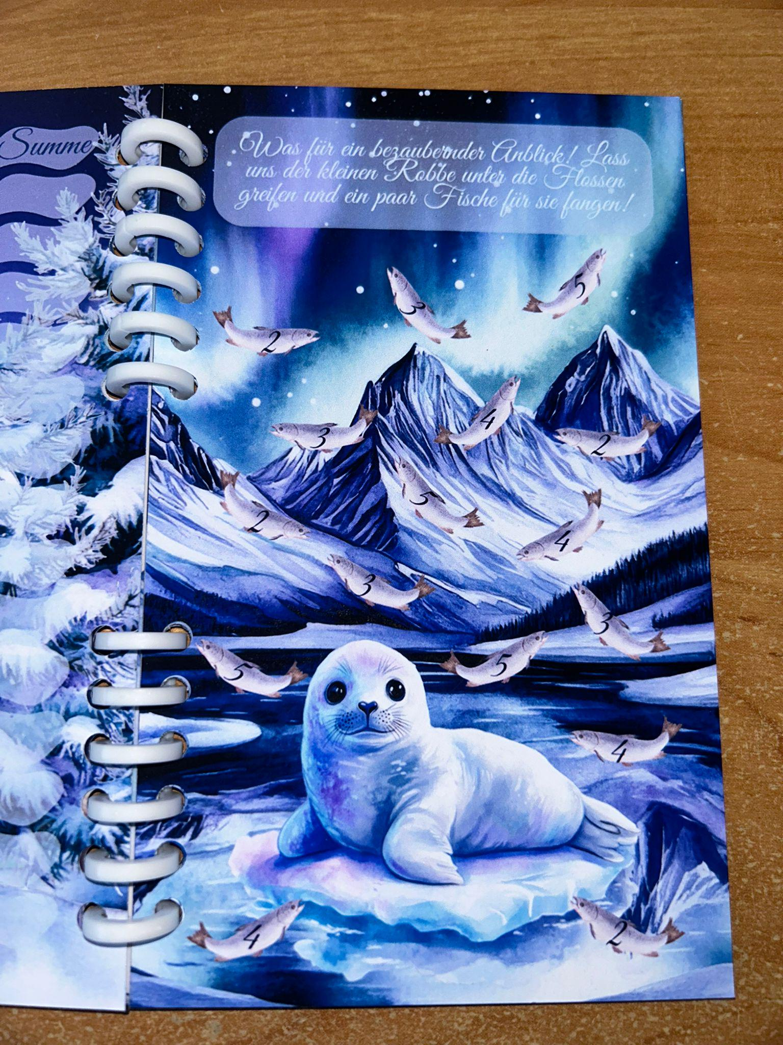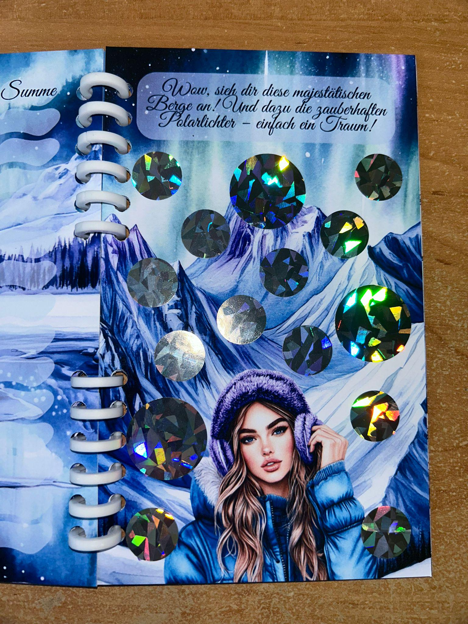 Sparbuch Winterzauber ist in Format A6. Das Buch hat insgesamt 10 Seiten wo die Einleitung und der Abspann Matt laminiert sind.